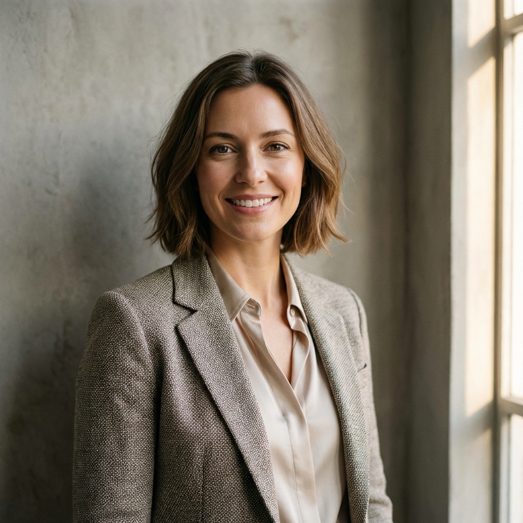 Professional retouching with high-fidelity skin smoothing and studio-quality lighting for social media.